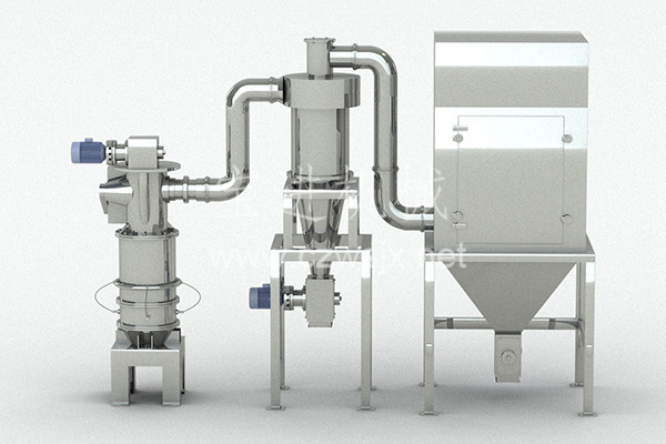 該機(jī)組適用于制藥、食品、化工等行業(yè)。具有風(fēng)冷、無篩網(wǎng)等多種性能,它不受物料粘度、軟硬度及纖維等限制,對任何物料能起到較好的粉碎效果。特別適用于粉碎帶纖維的中藥材、帶一定油性的物料。