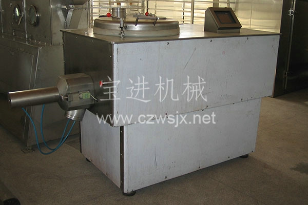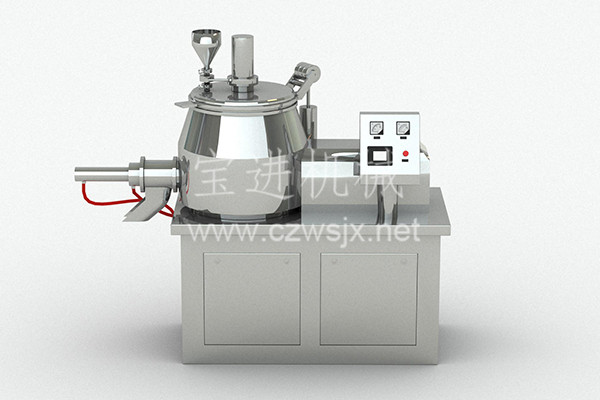 粉體物料與粘合劑在圓筒形容器中由底部混合漿充分混合成濕潤軟材,然后由側(cè)置的高速粉碎槳切割成均勻的濕顆粒。